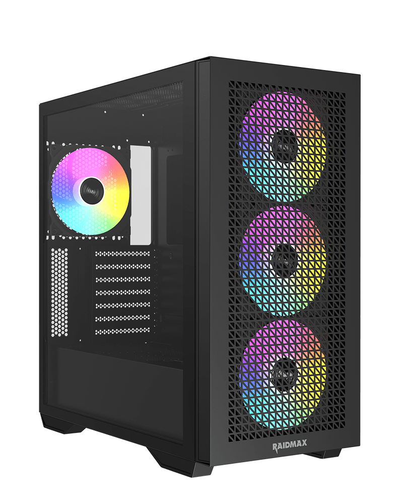 - RAIDMAX MESHIAN X605 Case A robust and elegant black chassis designed for optimal airflow and efficient cable management.