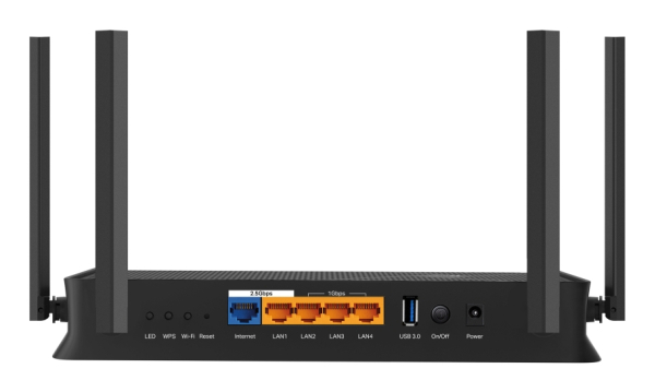Ka porta kabllore të cilat përfshijnë 1 × 2.5 Gbps WAN, 1 × 2.5 Gbps LAN dhe 3 × 1 Gbps LAN për t’iu përgjigjur lidhjeve të internetit me shpejtësi të lartë.