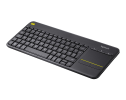 Wireless Touch Keyboard K400 Plus is a full size keyboard layout and touchpad in a compact size. Incurve keys are ideal for touch typists and the soft key stroke makes this a quiet keyboard. The full size touchpad gives you the familiar scroll and navigation gestures. With the left- and right-click buttons below the touchpad and the volume control buttons above, control is at your fingertips. For two-hand control, typically used by those who like to use their thumbs to navigate, a left mouse-click button is located on the upper left side of the keyboard—navigate with your right hand, select with your left.