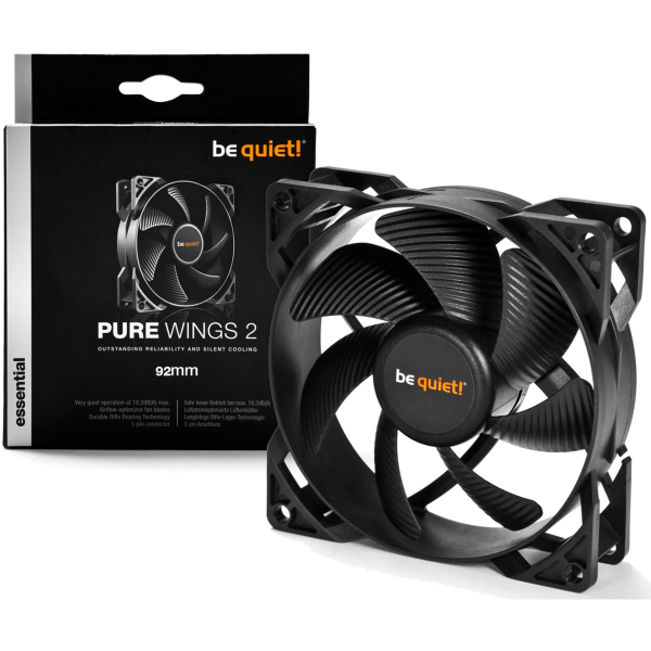 be quiet! Pure Wings 2 (92 mm) është një ventilator për case i krijuar për qarkullim ajri të qetë dhe të qëndrueshëm në kompjuterë desktop. Me shpejtësi deri në 1900 rpm dhe rrjedhje ajri 33.2 cfm, ky model ofron balancë mes performancës dhe nivelit të ulët të zhurmës prej vetëm 18.6 dBA. Pajisur me rifle bearing për jetëgjatësi të lartë dhe funksionim të besueshëm, është një zgjedhje ideale për përdorues që kërkojnë ftohje të qëndrueshme pa kompromentuar qetësinë.